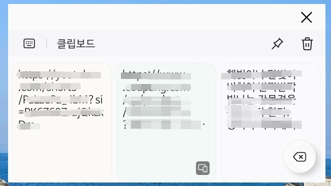 - 클립보드에 저장된 최근 복사 항목들을 확인할 수 있습니다.