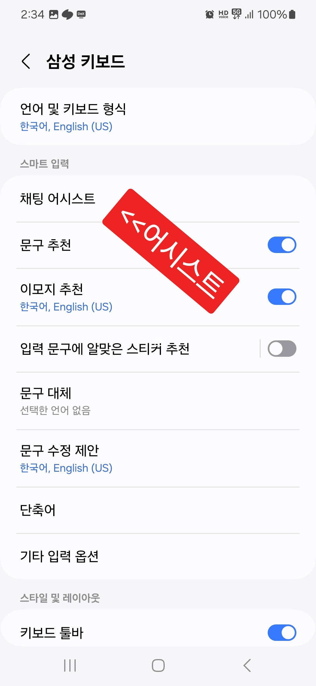 - 삼성 키보드 설정 터치.
