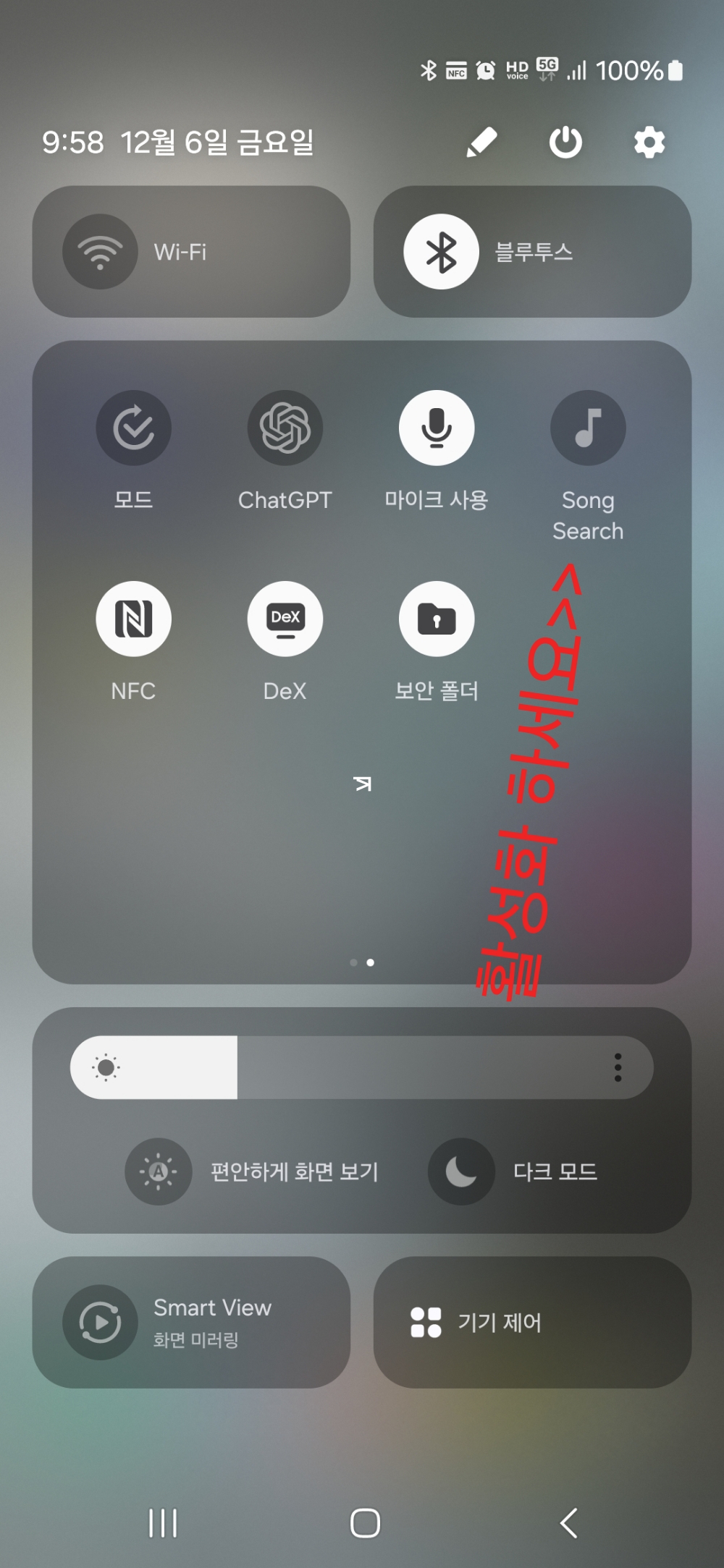 - 갤럭시 안드로이드 스마트폰 상단 알림바를 내려주세요.
