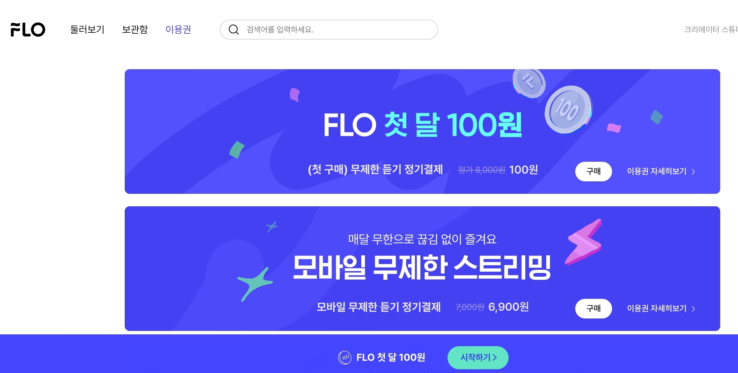- 특징 : KT에서 운영하는 음악 스트리밍 서비스로, 다양한 장르의 음악을 제공하며, 사용자 맞춤형 플레이리스트가 강점이라 할 수 있다고 합니다.
