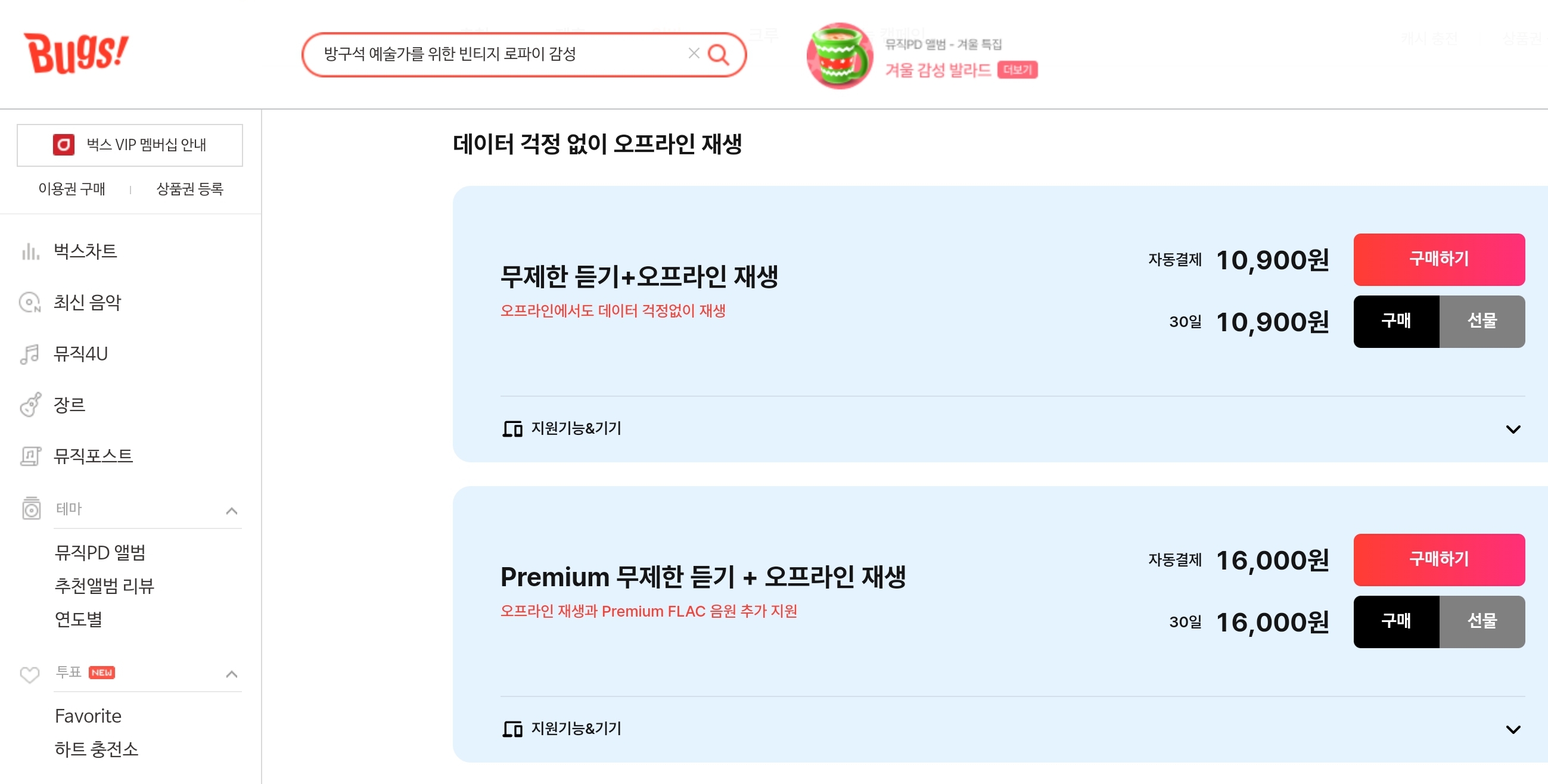 - 장점 : 라디오 방송과 연계된 서비스 등 다양한 부가 기능을 제공하며, 음악 감상의 폭을 넓힐 수 있습니다.