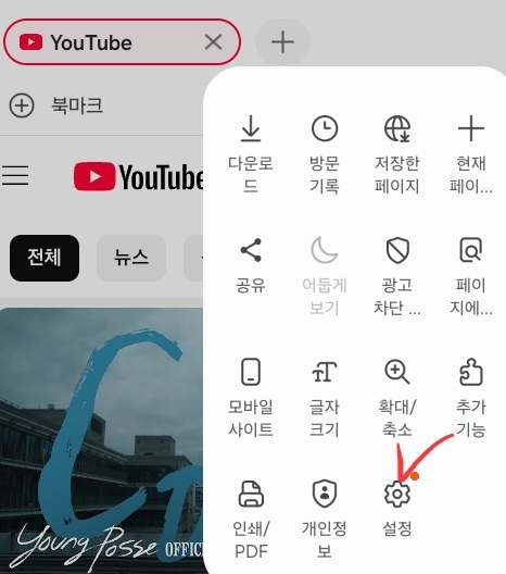 삼성 인터넷 브라우저로 유튜브 백그라운드 재생 설정