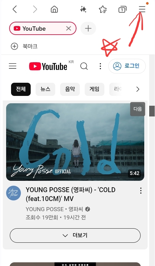 브라우저 검색창에 유튜브를 검색한 다음 접속하세요. PC에서 사용하는 것 처럼 인터넷 브라우저를 통해 유튜브 접속하신다고 생각하면 됩니다.