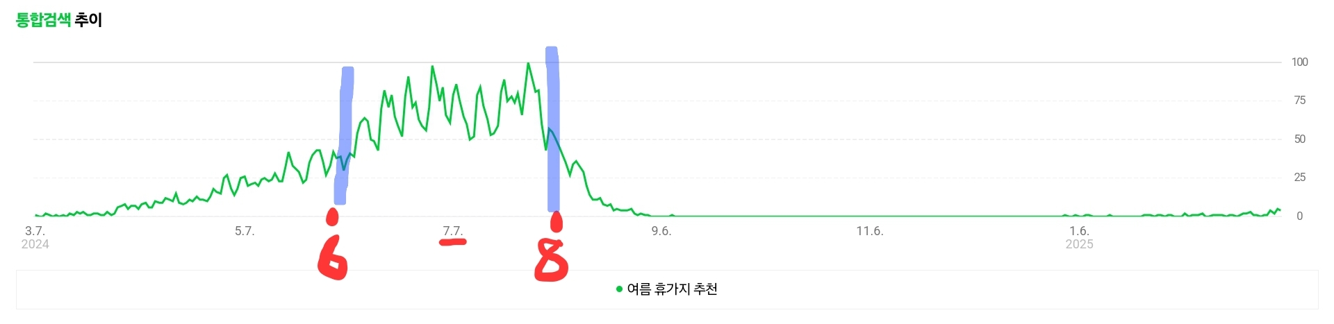 키워드 검색량이 특정 시기에 급등하는지 확인하세요. "여름 휴가지 추천"은 6~8월에 검색량이 높을 가능성이 큽니다. 이런 계절성을 활용하면 시기적절한 콘텐츠로 조회수를 극대화할 수 있습니다.