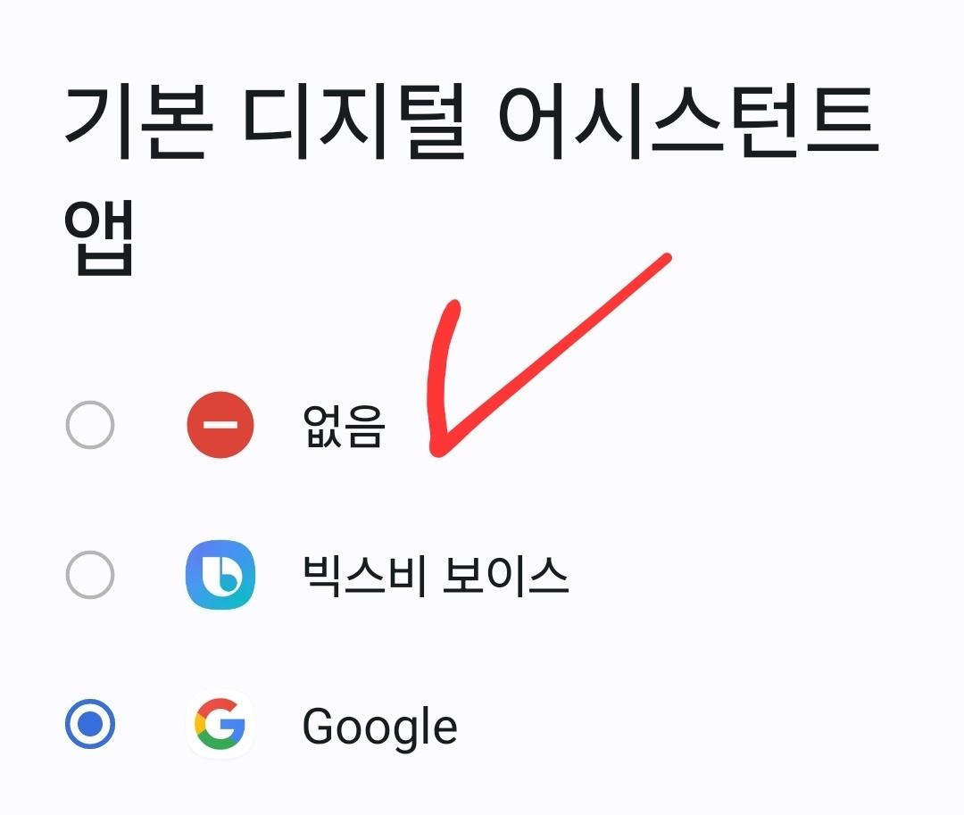 - 구글 어시스턴트 대신 없음이나 다른 옵션을 선택하면 홈 버튼으로 어시스턴트가 켜지지 않아요.