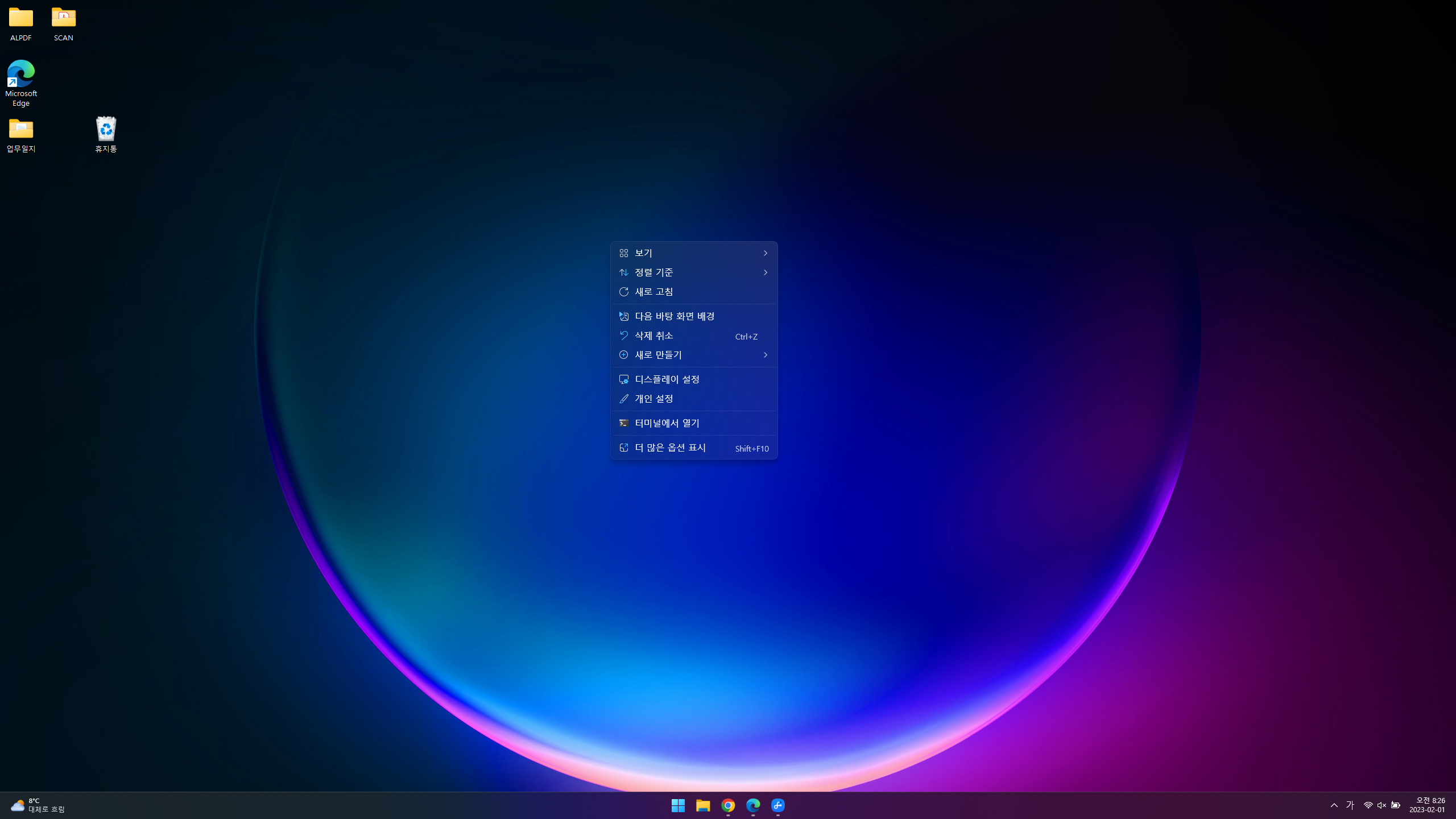 1. 바탕화면 빈 자리에서 마우스 우클릭.