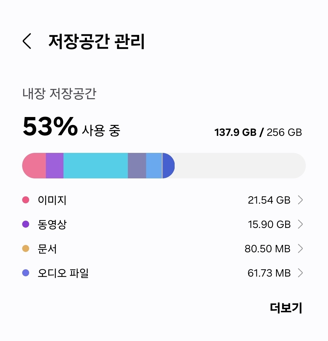 - 수동 정리: 내 파일 > 이미지/문서 폴더에서 크기순으로 정렬해 중복된 항목을 직접 삭제하세요.