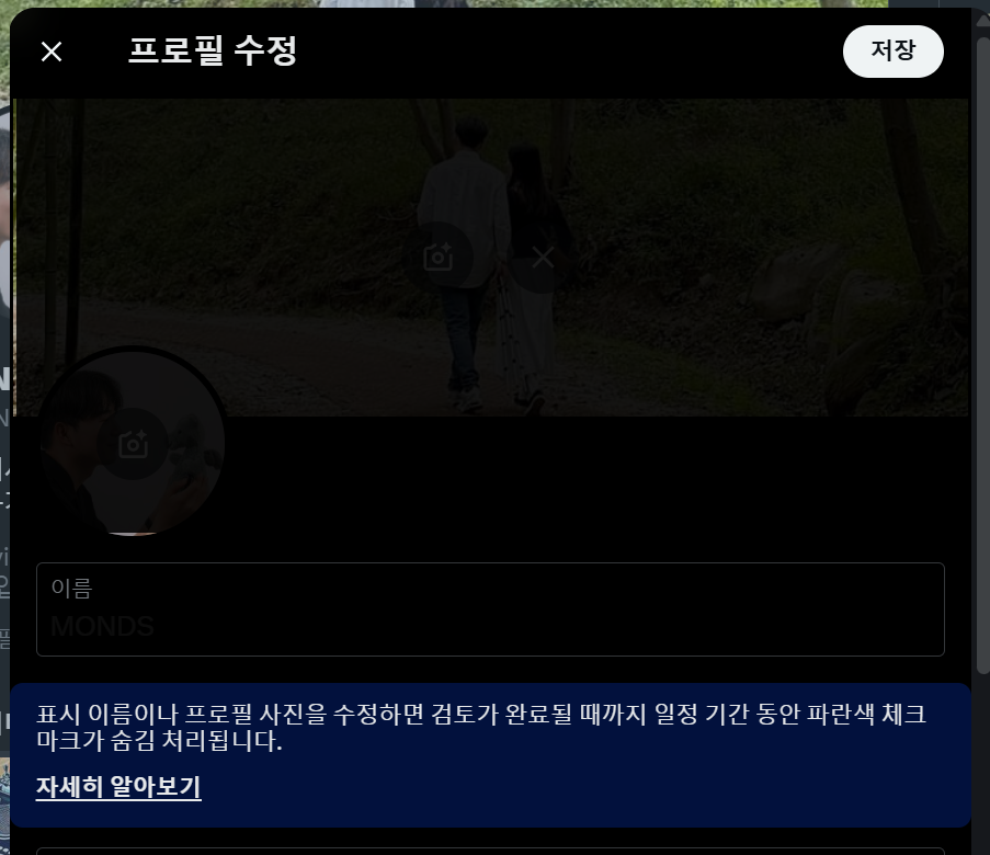 트위터X에서는 두 가지 이름 설정이 가능하다.