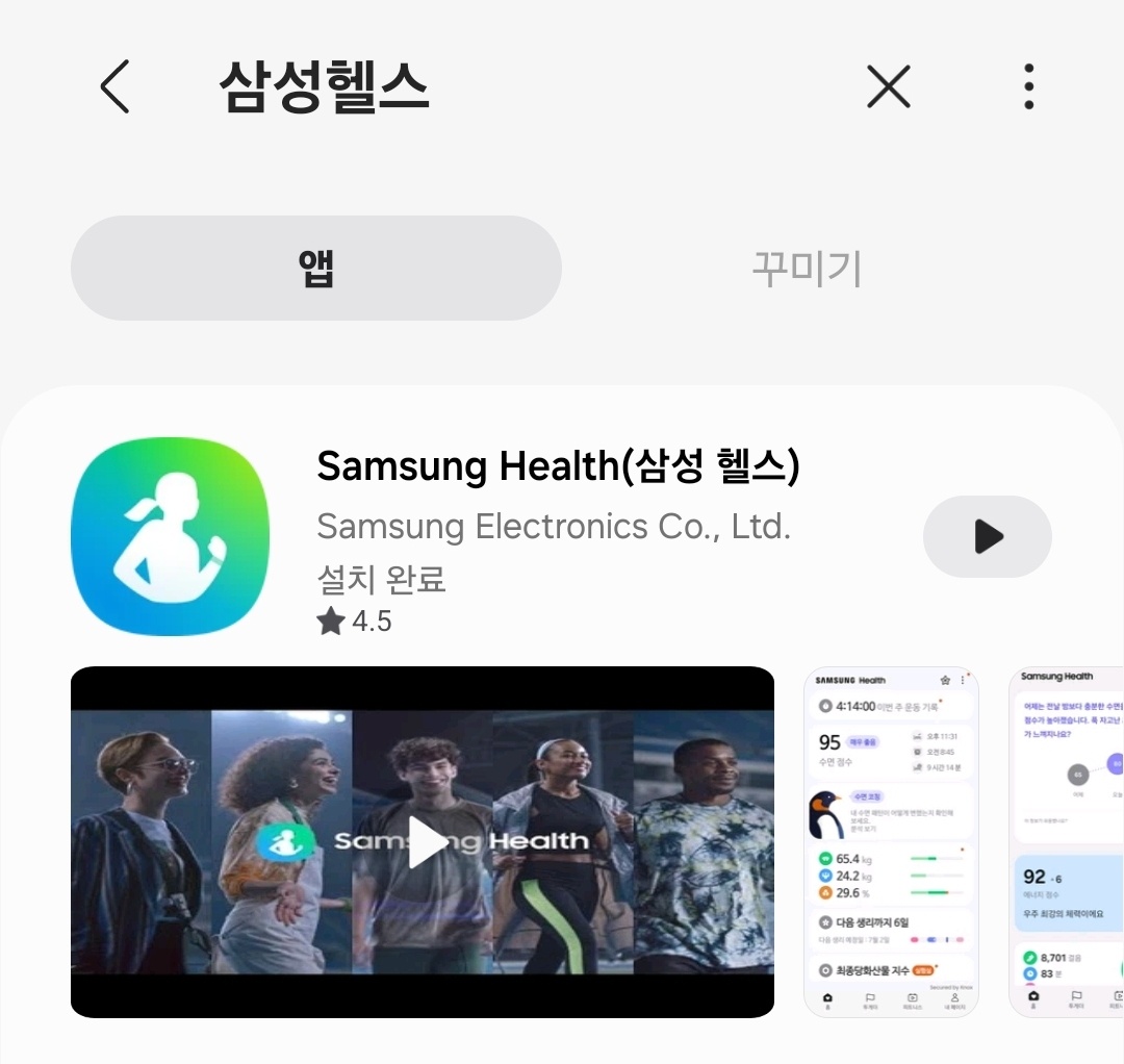 - 구글 플레이 스토어나 삼성 갤럭시 스토어에서 "Samsung health" 또는 "삼성 헬스"로 검색하세요.